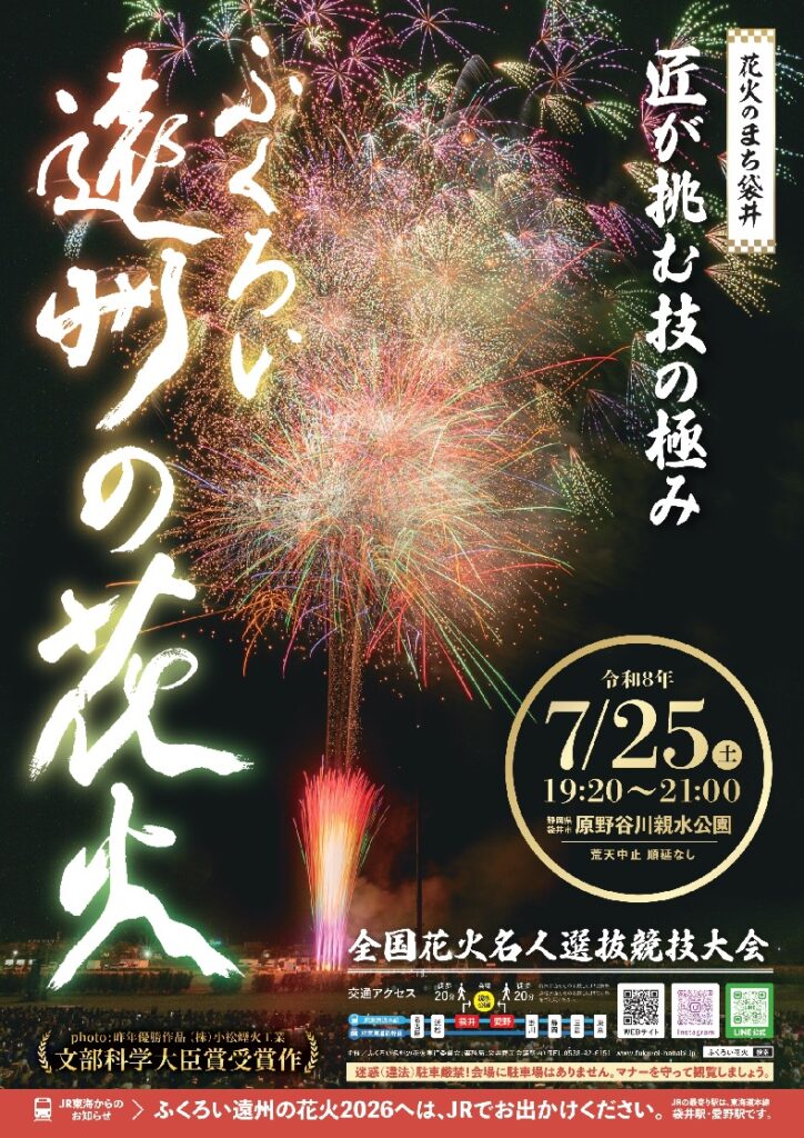 「ふくろい遠州の花火2026」のポスターを、協賛いただいた皆さまおよび市内の事業所の皆さまにお配りしています。